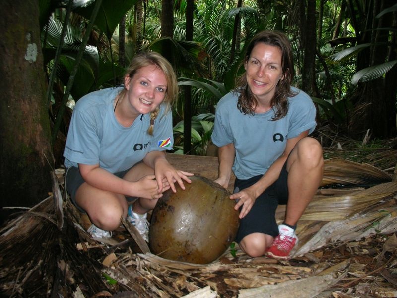 Leading from our Coco de Mer excitement on Monday, as we terrestrial girls are so charming we were honored to be invited along with the world expert and his field research team to work along side them, gaining more experience in the magical Vallee de Mai. If you picture a tropical rainforest with 20m tall Coco de Mer palms, and all of the mesmerising wildlife that goes with it you will be able to picture about 10% of how mind blowing this place was. We set off into the jungles with Chris (expert in all things CDM) his recorder Wilna and the spectacular Oobie; we were in the jungle for 6 hours, no break, climbing through the rough terrain up the hills of the vallee, and this guy had a 6m long alluminium ladder on his shoulder! Before we could even reach the tree Oobie was gone, up his ladder swinging through the 12m long palm leaves. It was my birthday and it was easily the most memorable birthday I could have asked for! On this trip Pascal, the World expert on the Black Parrot (extremely rare, found only in Madagascar and our neighbouring island Praslin, although it has also been sighted on Curieuse) took us to where they are located in the Vallee and taught us how to spot them while we are surveying our Coco de Mers, their favourite nesting site.